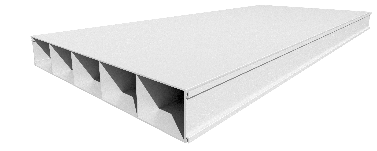 Lightweight structural PVC wall system optimized for compact buildings, combining insulation, structure, and finished surfaces in one panel.